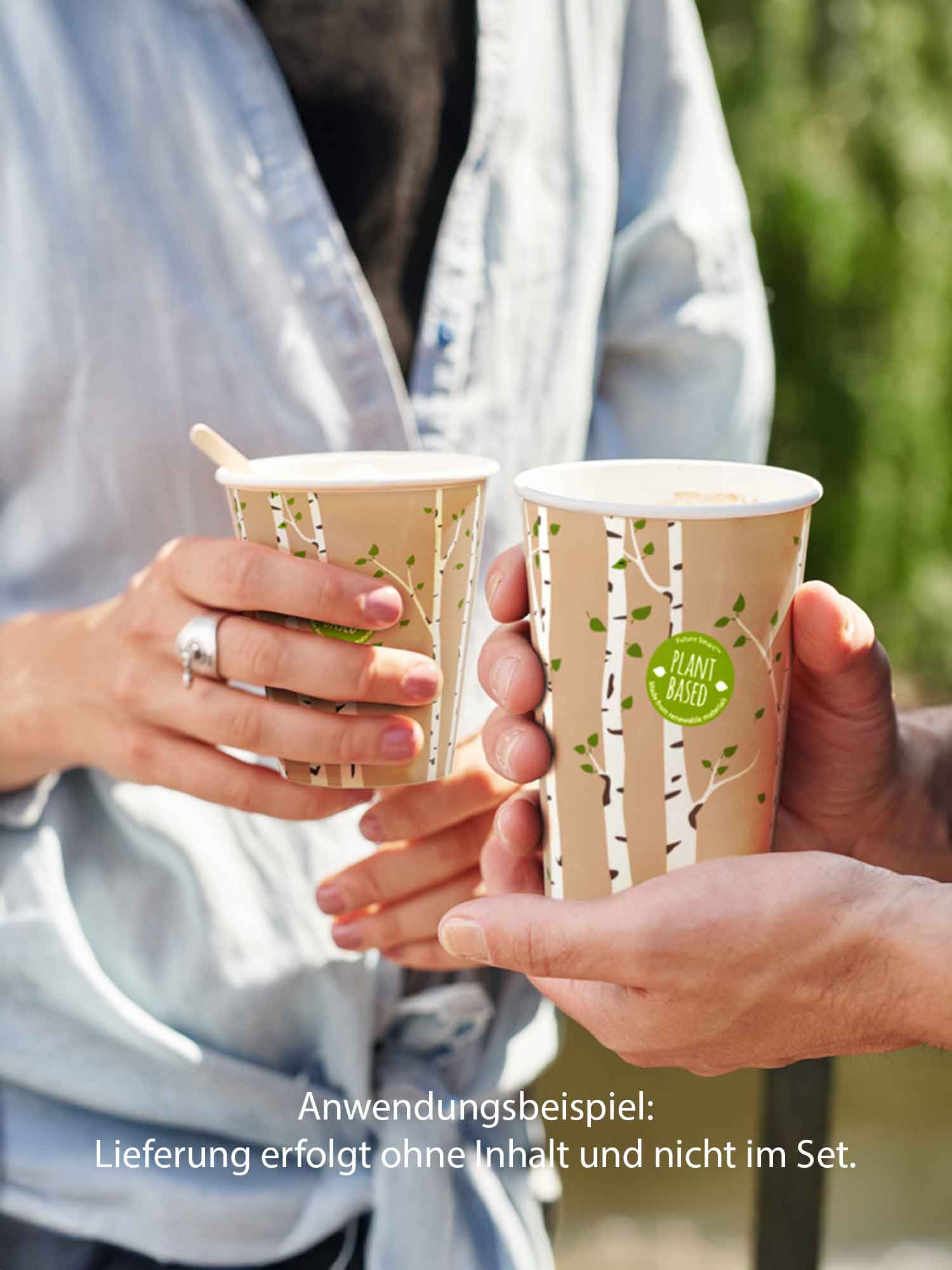 Reduzierung des ökologischen Fußabdrucks: Unsere Future Smart™ Woodland Becher verwenden weniger Kunststoff als herkömmliche beschichtete Kartons und Beschichtungen auf Acrylbasis, die als Kunststoff gelten. Wir erreichen einen Mindestfaseranteil von 95 % des Produktgewichts oder einen Polymeranteil von weniger als 5 %.